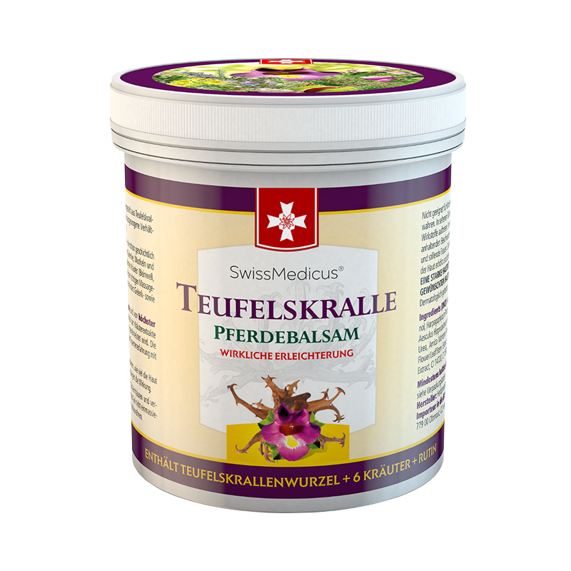 SwissMedicus® Diablov pazúr je jedinečný bylinný balzam vyrobený z extraktu koreňa diabolského pazúra, doplnený o 6 osvedčených bylín a rutín. Vyvážený pomer týchto zložiek pôsobí synergicky a zaručuje silný účinok.
