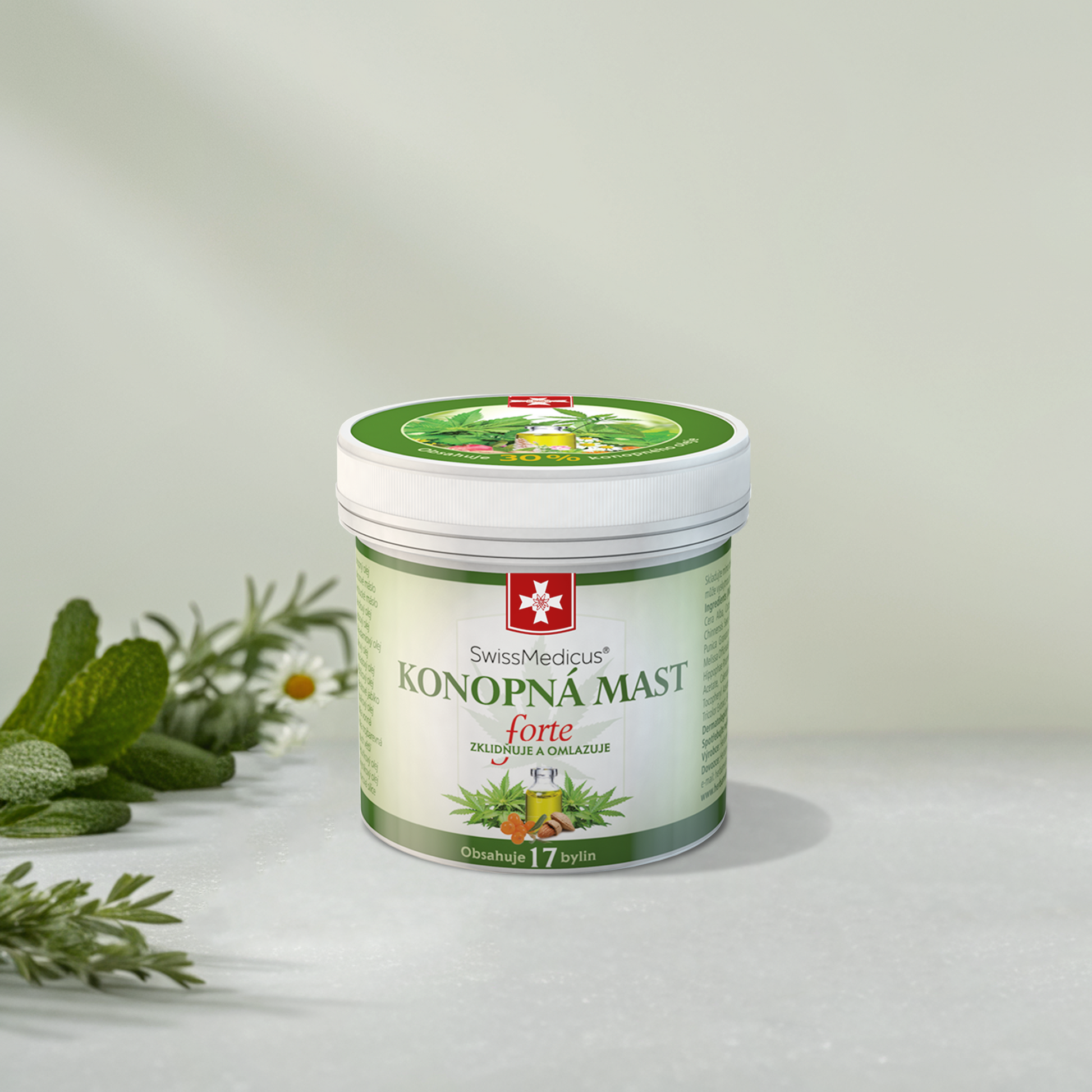 - Vďaka kombinácii bylinných extraktov s konopným olejom má masť priaznivý účinok na citlivú, starnúcu a problematickú pokožku .